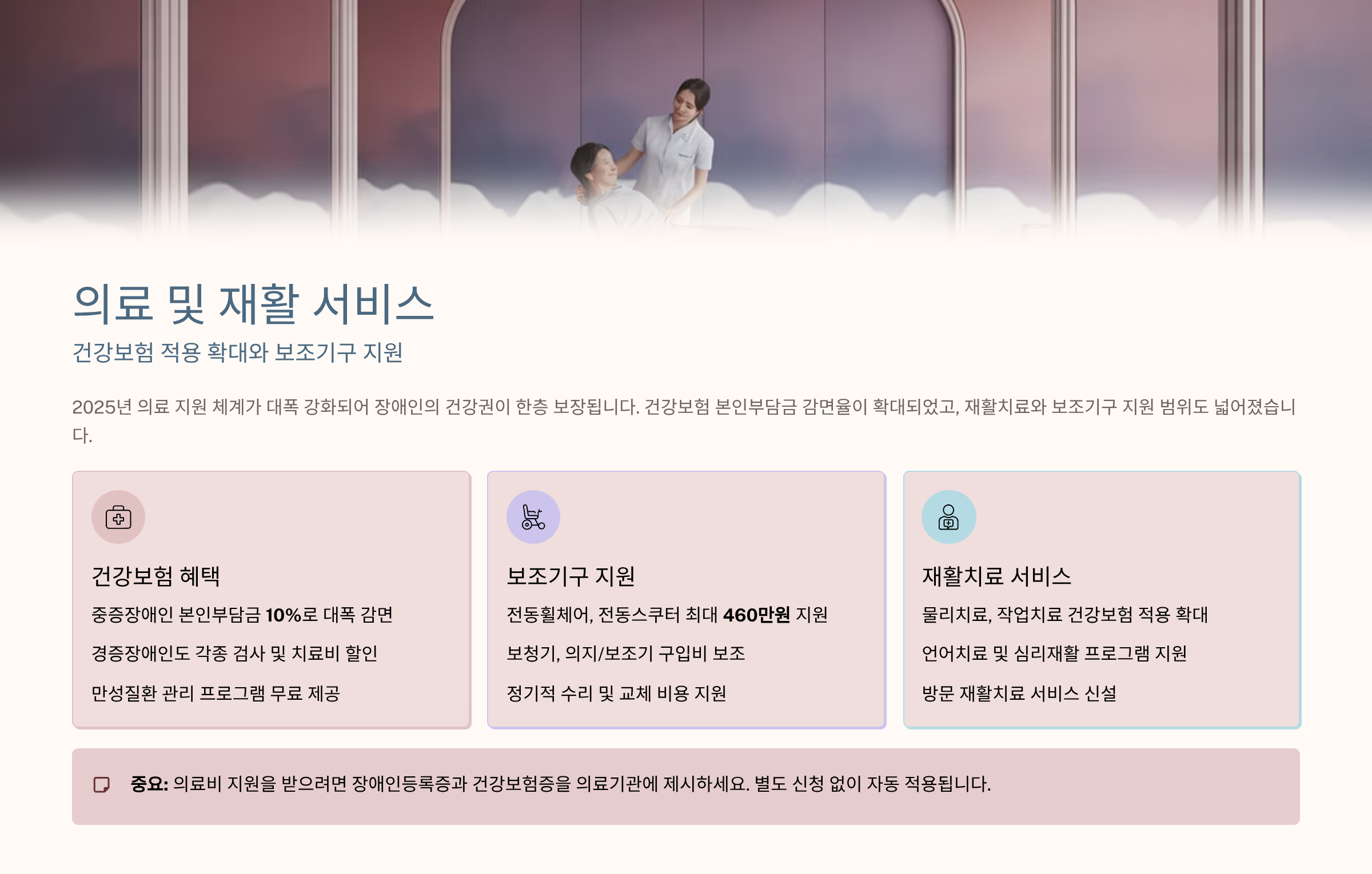 ✅ 2025년 의료 및 재활 지원 주요 개선점