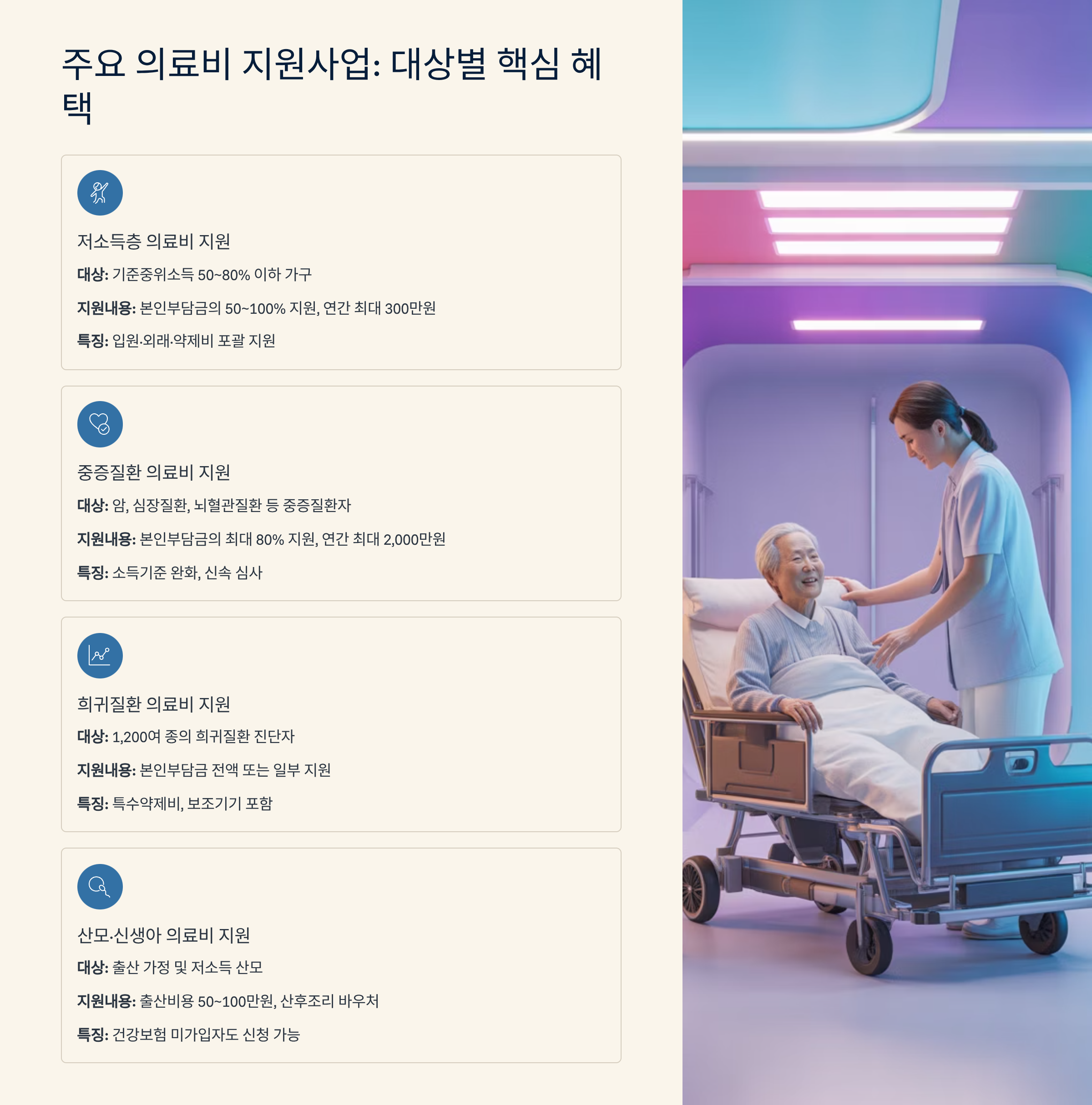 주요 의료비 지원사업: 대상별 핵심 혜택과 자격 요건 ✅