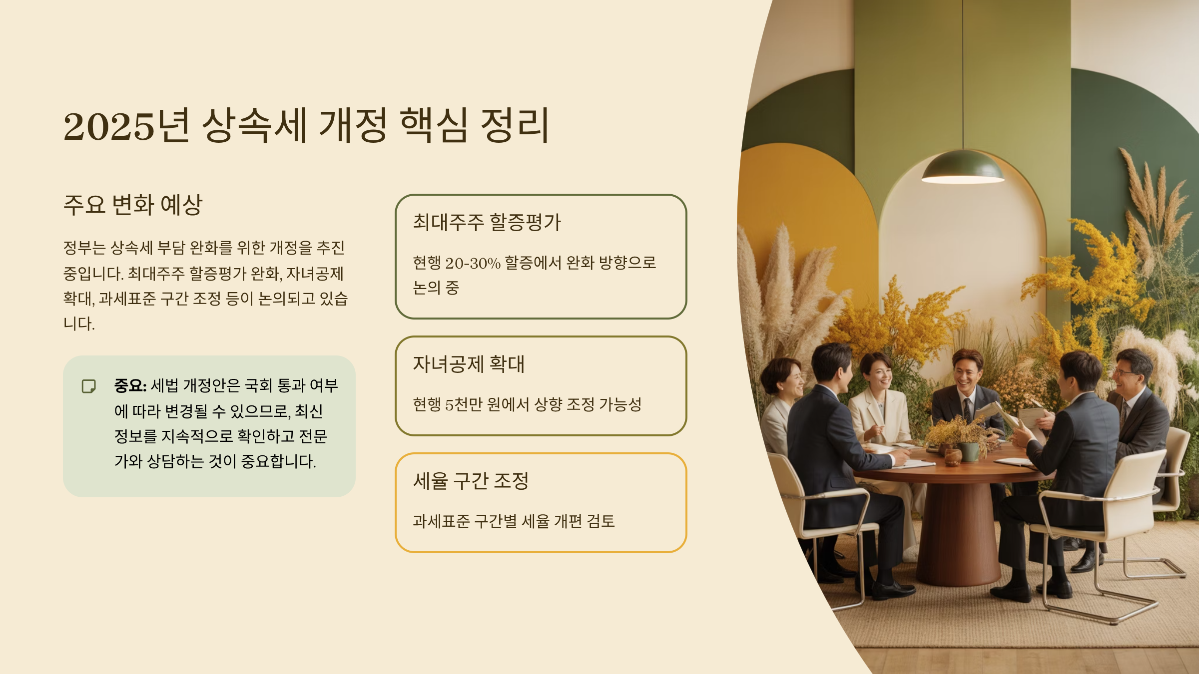 변화하는 세법 환경에 대비: 2025년 상속세 개정(추정치) 핵심 정리 ⚠️