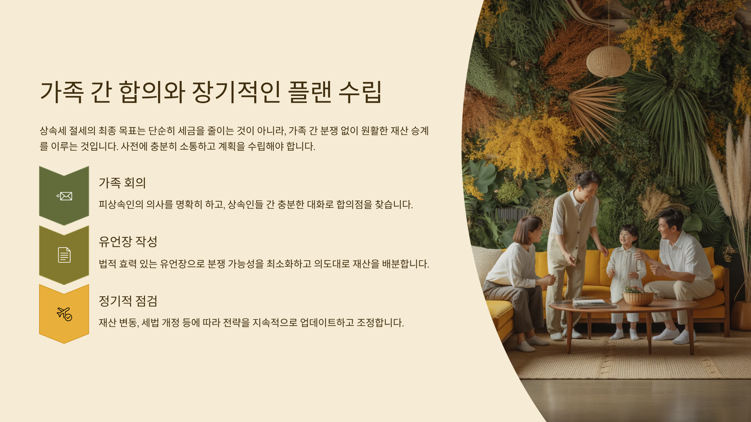 상속세 절세의 최종 목표: 가족 간 합의와 장기적인 플랜 수립 🤝