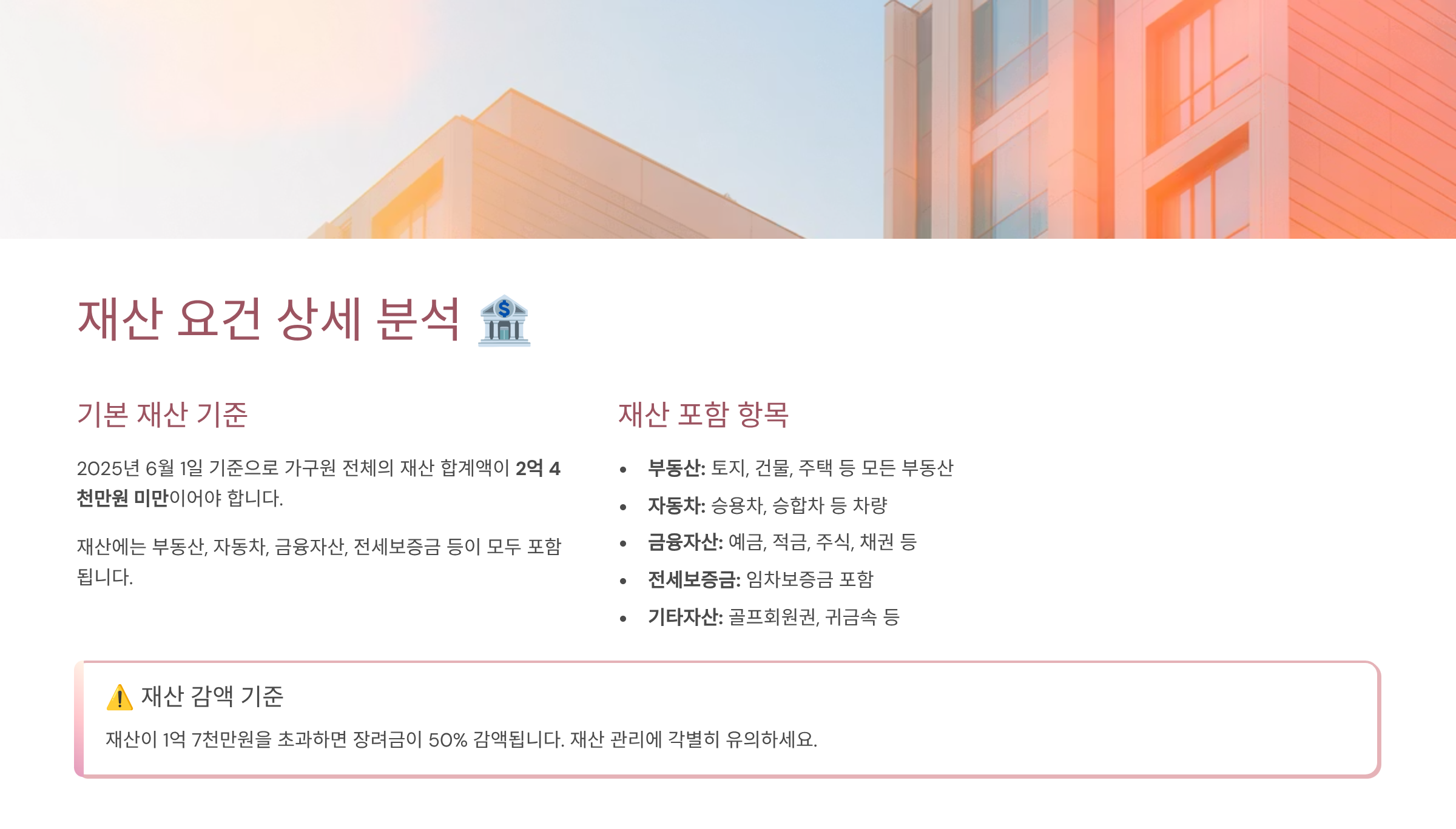 '재산 요건' 상세 분석: 부동산, 금융자산 포함 기준과 감액 기준 🏦