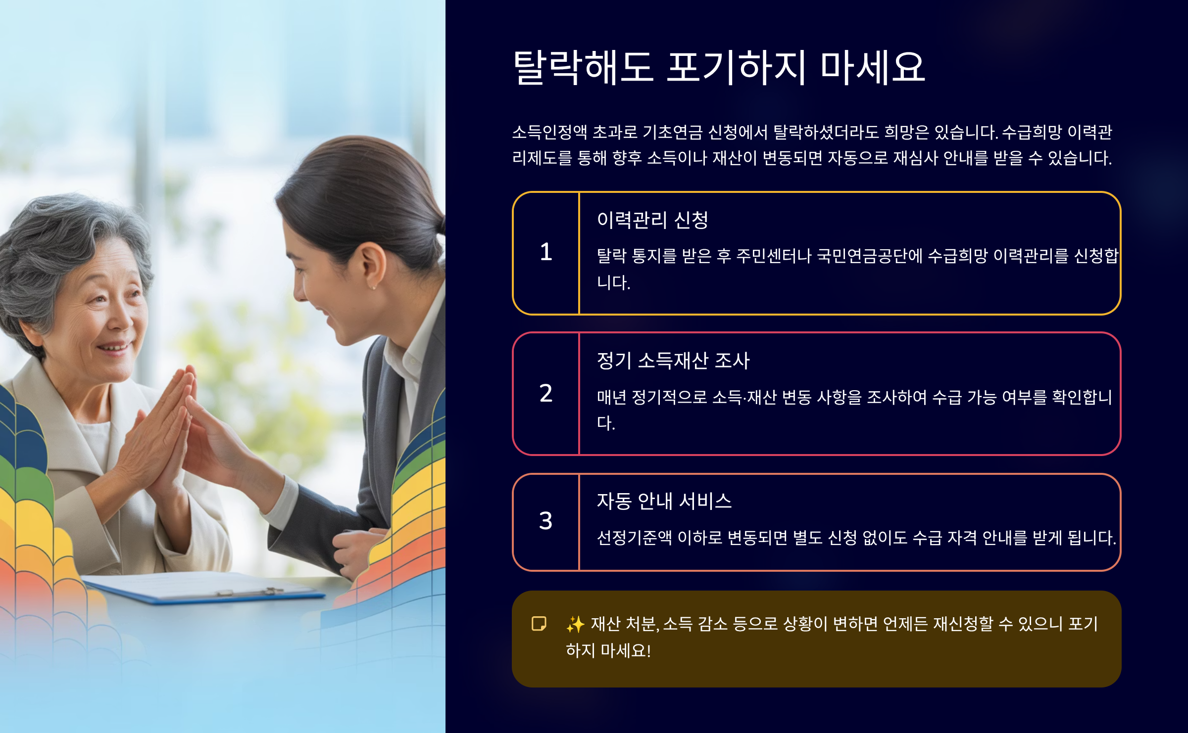7. 탈락해도 희망은 있다: '수급희망 이력관리제도' 활용법 ✨