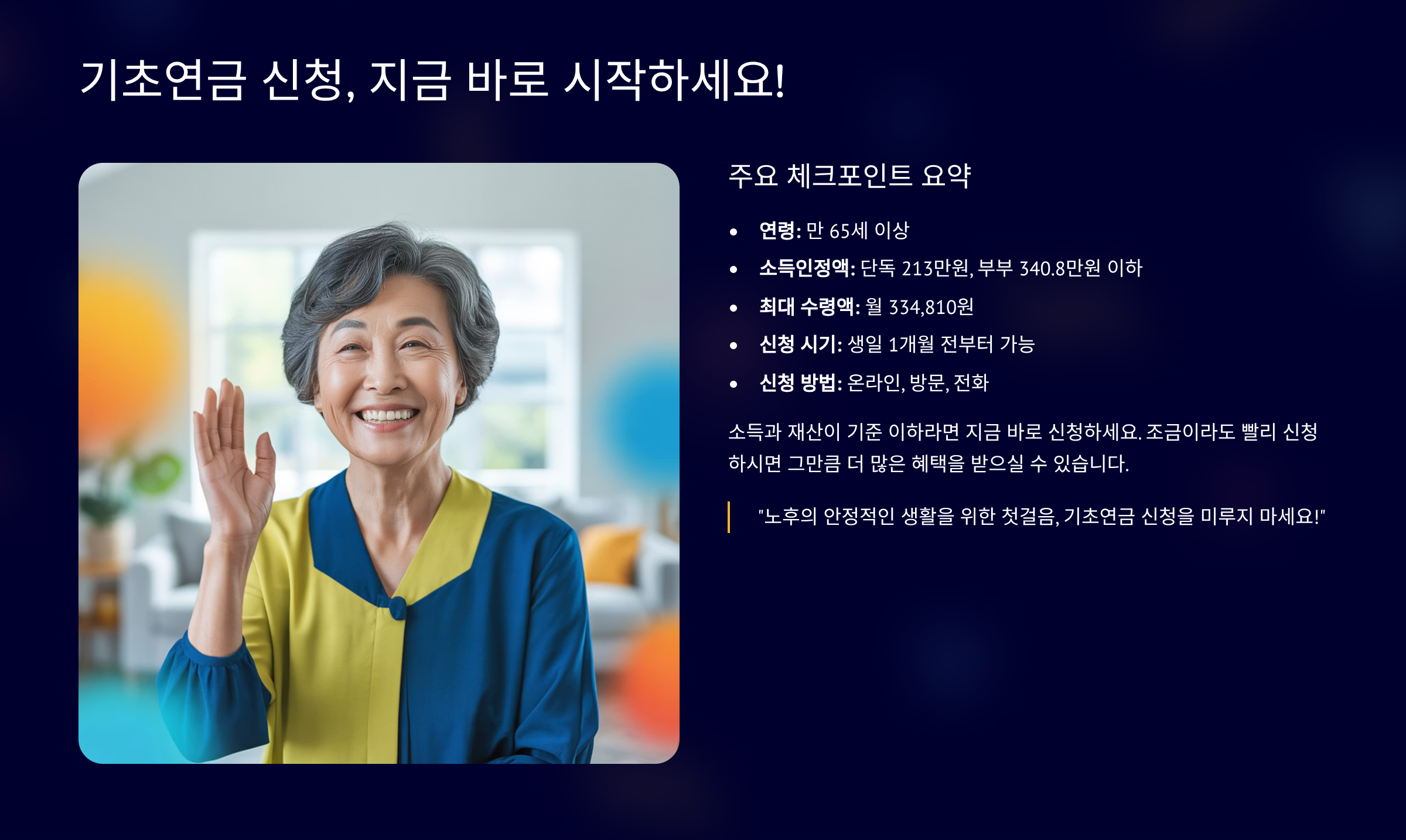 이 세 가지 핵심 포인트를 기억하고 지금 바로 기초연금을 신청하세요!