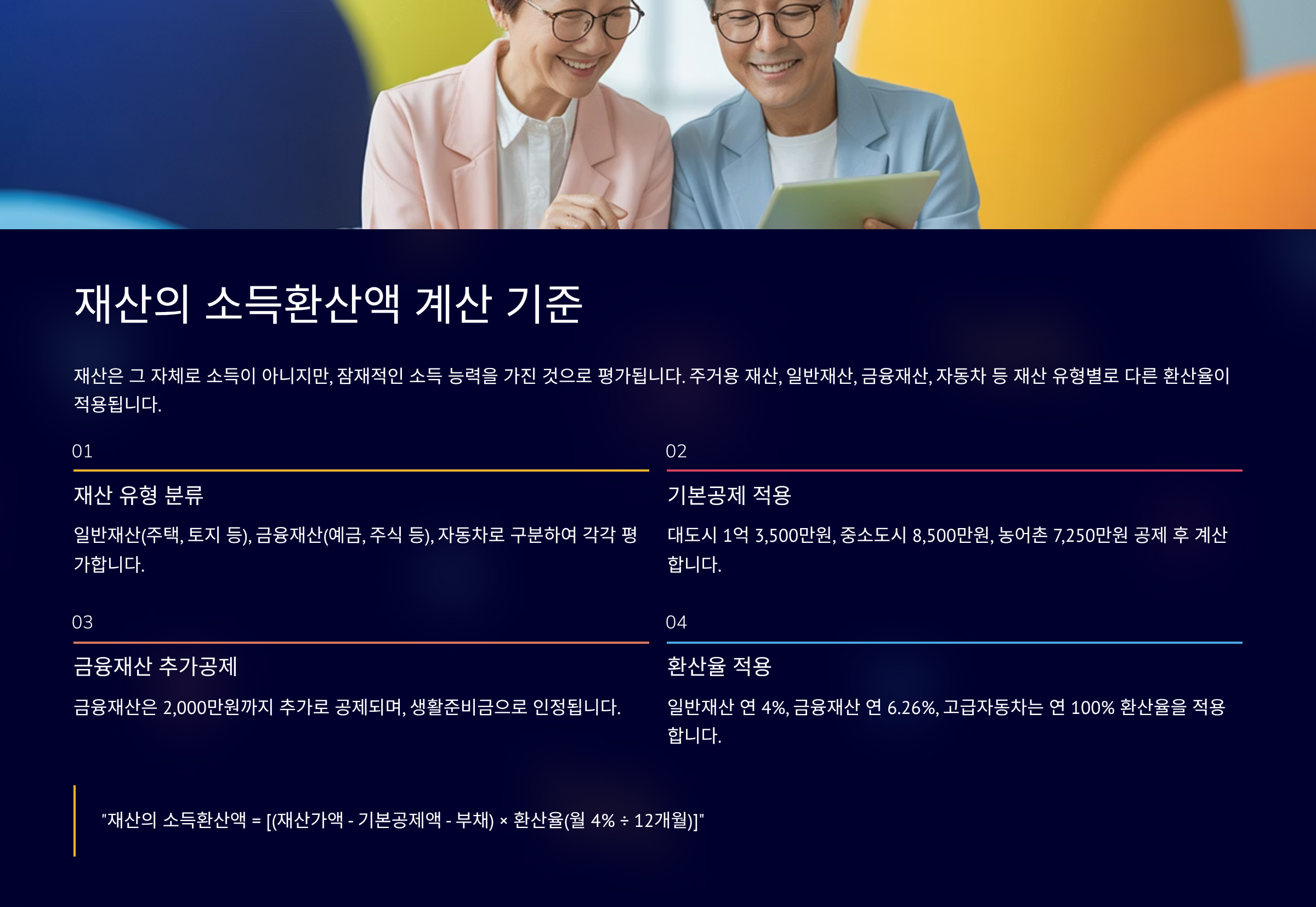 4. 재산의 소득환산액 계산: 주택, 금융재산 공제 기준 🏡