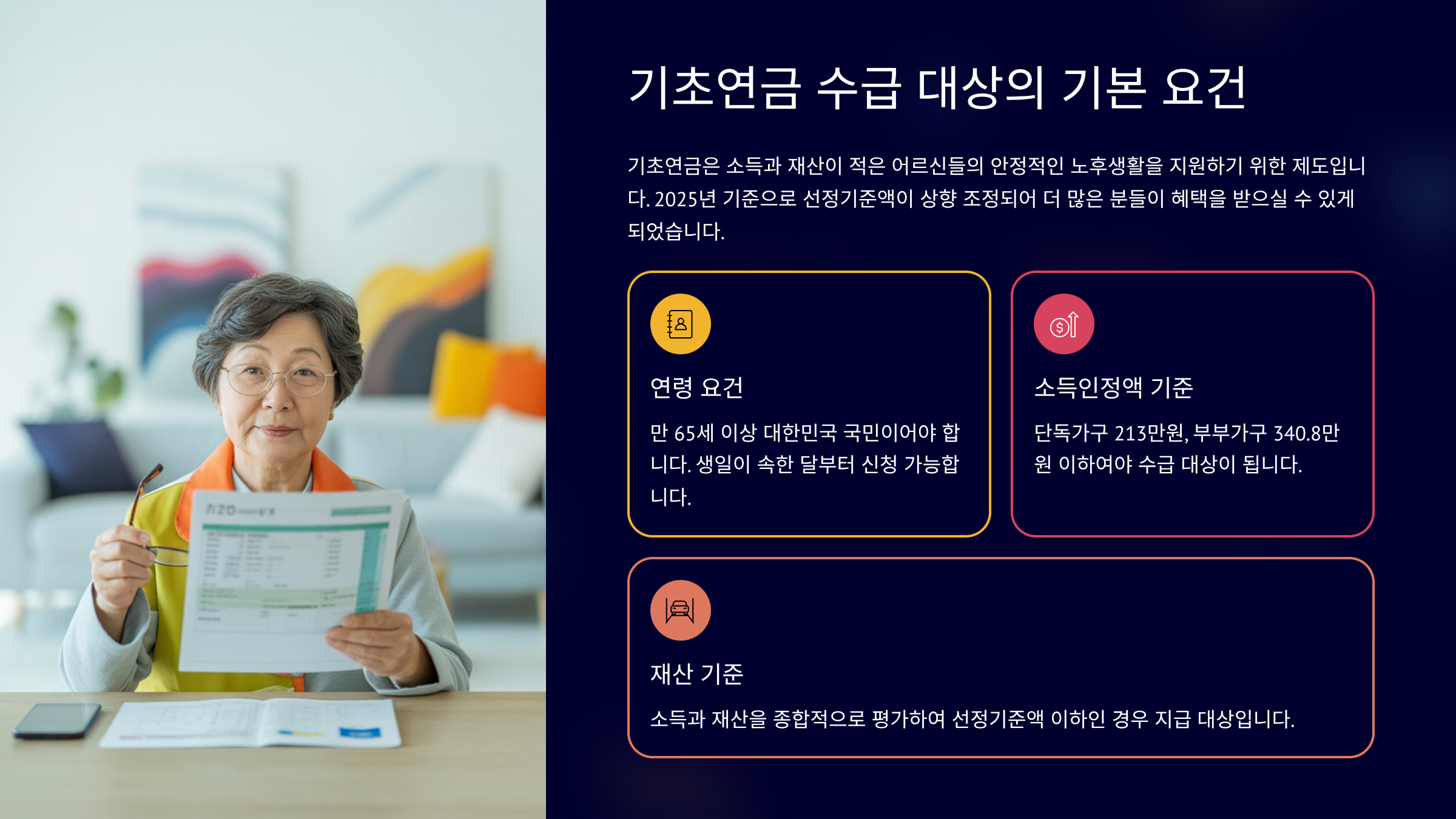 기초연금 신청자격: 2025년 '소득인정액' 확인부터 수령액까지 완벽 가이드!