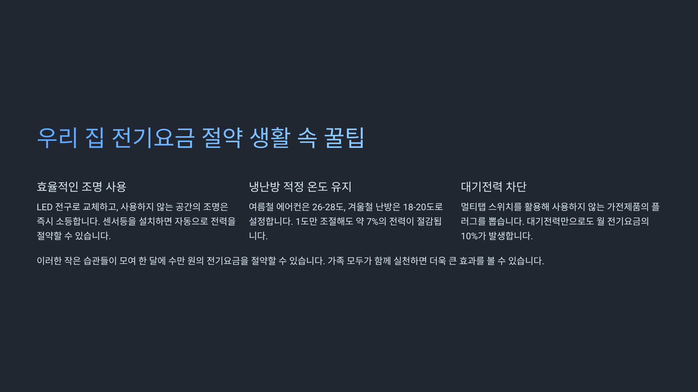 핵심 강조 3 (모두): 복지할인 대상자는 이사 시 재신청! 대기전력 차단 습관을 생활화하세요.