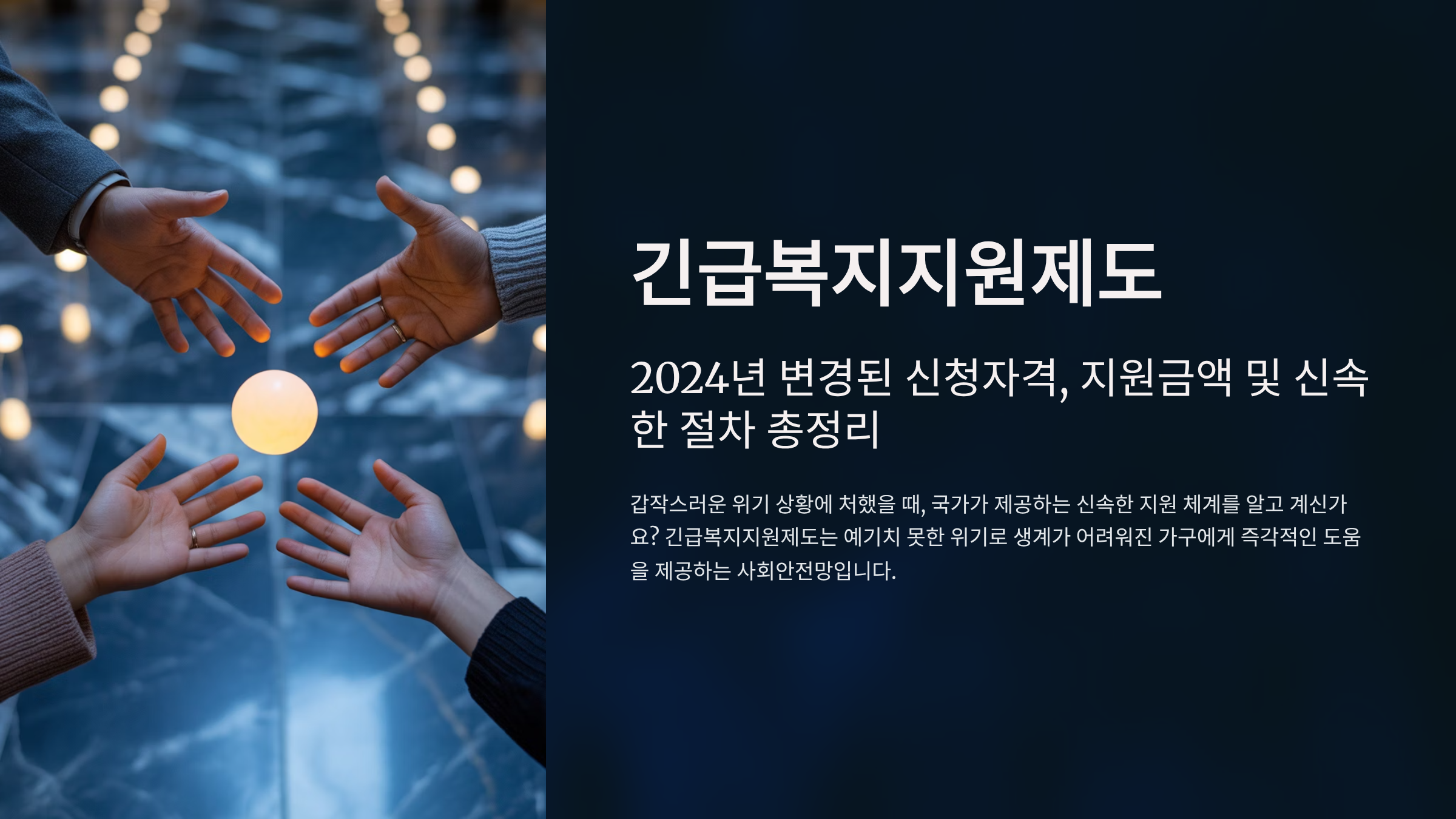 인생을 살아가다 보면 예기치 않은 위기 상황을 마주칠 수 있습니다. 주소득자의 갑작스러운 실직, 중한 질병, 가정폭력, 혹은 화재와 같은 재난은 당장 생계를 위협하는 심각한 문제죠. 이럴 때 정부는 **긴급복지지원제도**를 통해 생계비, 의료비, 주거비 등을 **'선지원 후조사'** 방식으로 신속하게 지원합니다. 2024년에는 지원 금액과 재산 기준 등이 변경되어 더 많은 분들이 혜택을 받을 수 있도록 문턱이 낮아졌습니다. 지금부터는 2024년 최신 기준으로 **긴급복지지원제도 신청자격**, **지원 금액**, 그리고 **신청 절차**를 A부터 Z까지 상세히 안내해 드리겠습니다. 이 글을 통해 위기 상황을 극복할 수 있는 실질적인 정보를 얻으시길 바랍니다.